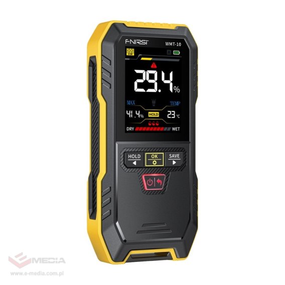 FNIRSI WMT-10 to zaawansowany, bezinwazyjny miernik wilgotności, który zapewnia szybkie i dokładne odczyty bez konieczności przebijania powierzchni. Dzięki technologii indukcyjnej i czterem trybom pomiarowym sprawdzi się zarówno w pracy z drewnem, jak i przy badaniu ścian, podłóg czy materiałów budowlanych. Wysoka rozdzielczość (0,1%) i szeroki zakres pomiarowy do 75% pozwalają uzyskać precyzyjne wyniki w zaledwie kilka sekund. Duży, kolorowy ekran TFT o przekątnej 2,4" zapewnia czytelność nawet w ciemnych pomieszczeniach, a wbudowana latarka dodatkowo wspiera pracę w trudnych warunkach.